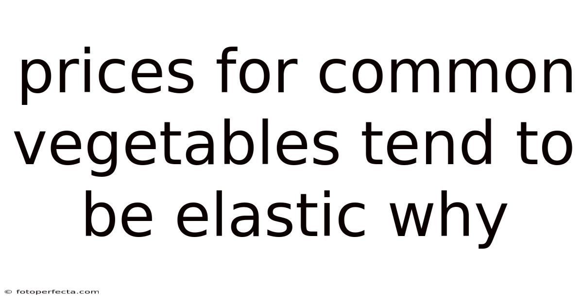 The concept of elasticity is central to understanding how markets function, especially in the realm of essential goods. Which means unlike luxury goods, which might see muted reactions to price changes, vegetables are frequently purchased, and buyers actively adjust their behavior when prices shift. In the case of common vegetables, elasticity is driven by several factors, including the availability of alternatives, the necessity of the product, and the proportion of income spent on it. Also, this article explores why prices for common vegetables tend to be elastic, examining the underlying economic principles, real-world examples, and the implications for consumers, producers, and policymakers. By analyzing the structure of vegetable markets, we can better grasp how supply shocks, seasonal changes, and consumer preferences interact to shape price movements But it adds up..