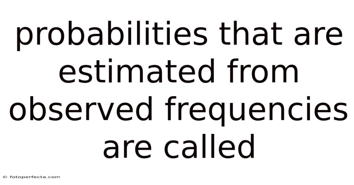 Understanding probabilities derived from observed frequencies is a fundamental concept in statistics and data analysis. Practically speaking, this approach helps us interpret patterns in real-world data by comparing what we see with what we expect. Consider this: whether you're a student, educator, or professional, grasping this idea is essential for making informed decisions based on evidence. In this article, we will explore the meaning behind probabilities calculated from observed data, the methods used to estimate them, and their significance in various fields Simple as that..