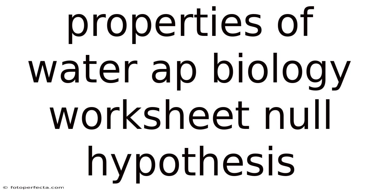 Water is one of the most essential molecules for life on Earth, and its unique properties make it a cornerstone of biological systems. In AP Biology, students often explore the physical and chemical characteristics of water, such as cohesion, adhesion, high specific heat, and its ability to dissolve substances. Day to day, these properties are not only fascinating but also critical for understanding how living organisms function. That said, when conducting experiments or analyzing data, students must also grasp the concept of the null hypothesis, a fundamental principle in scientific research. This article gets into the properties of water, explains the null hypothesis, and provides a practical example of how these concepts intersect in biological studies.