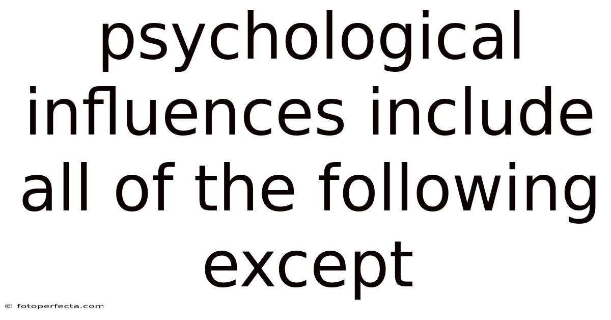 Psychological influences are the invisible currents that steer thoughts, feelings, and actions. They arise from the involved interplay of cognition, emotion, motivation, and social context. By distinguishing these internal drivers from non‑psychological factors such as physical health, environmental conditions, or legal constraints, we can design more effective interventions, policies, and communications. Whether you’re a teacher, marketer, manager, or curious learner, understanding the nuanced tapestry of psychological influences equips you to handle human behavior with clarity and empathy Less friction, more output..