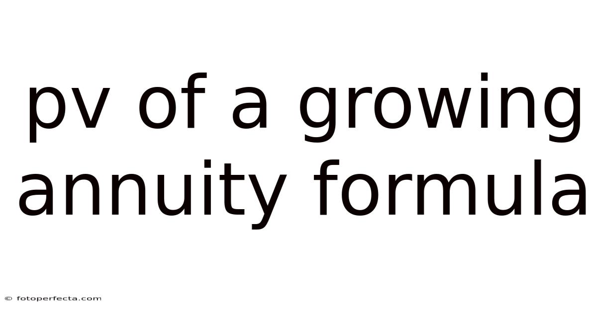Understanding the PV of a Growing Annuity Formula is essential for anyone looking to grasp the fundamentals of financial planning and investment strategies. Whether you're a student, a professional, or simply someone interested in managing your money wisely, this article will delve deep into the concept of a growing annuity and how to calculate its present value. By the end of this discussion, you'll have a clear understanding of the formula, its applications, and why it matters in real-life scenarios Worth keeping that in mind..