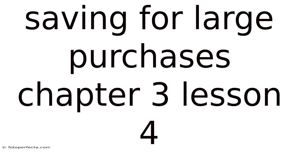 Saving For Large Purchases Chapter 3 Lesson 4
