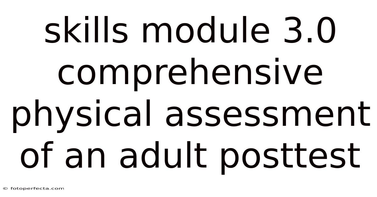Understanding the Skills Module 3.0 Comprehensive Physical Assessment of an Adult Posttest is essential for healthcare professionals aiming to enhance their diagnostic and evaluative capabilities. This module equips practitioners with a structured approach to assessing adults through a series of tests, ensuring accuracy and efficiency in identifying health conditions. By delving into the details of this process, learners can significantly improve their clinical skills and patient outcomes.