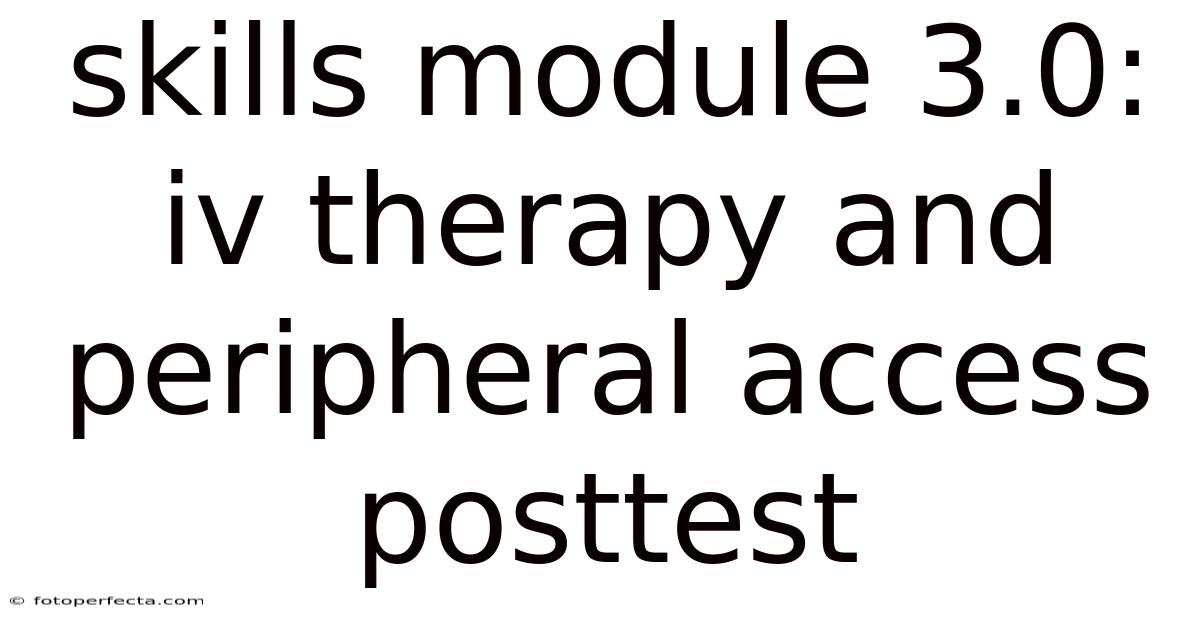Mastering intravenous (IV) therapy and peripheral vascular access is a non-negotiable cornerstone of clinical competence for nurses, paramedics, and many allied health professionals. The Skills Module 3.0: IV Therapy and Peripheral Access Posttest is not merely an examination; it is the definitive validation that a practitioner can translate theoretical knowledge into safe, effective, and compassionate patient care. This comprehensive guide delves into the essential concepts, procedures, and critical thinking required to not only pass this posttest with confidence but to excel in real-world clinical settings where every insertion impacts a patient's comfort, treatment efficacy, and safety.