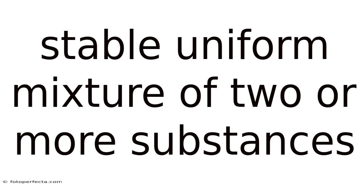 A stable uniform mixture of two or more substances, commonly known as a homogeneous mixture or solution, represents one of the fundamental concepts in chemistry that we encounter daily. Worth adding: these mixtures are characterized by their consistent composition and uniform appearance throughout, where the components are evenly distributed at a molecular level. Unlike heterogeneous mixtures that you can see separate components in, such as a salad or sand mixed with pebbles, stable uniform mixtures appear as a single, consistent phase. This uniformity makes them incredibly important in both natural processes and human-made products, from the air we breathe to the beverages we consume.