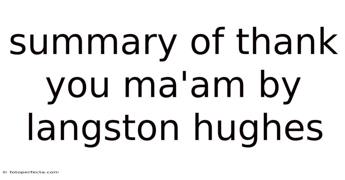 Summary of "Thank You, Ma'am" by Langston Hughes