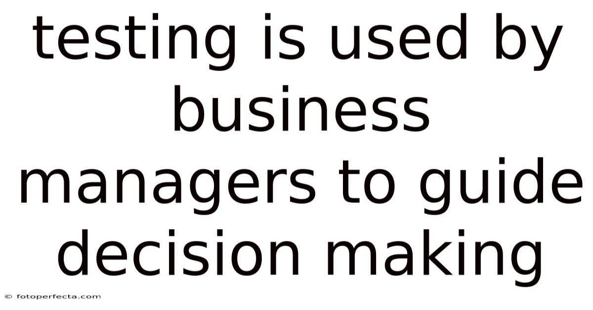 Testing Is Used By Business Managers To Guide Decision Making
