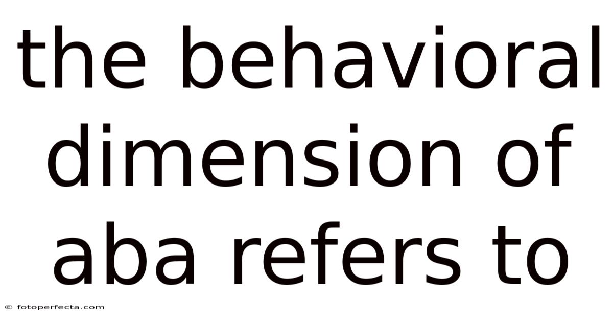 Thebehavioral dimension of ABA refers to the core focus of Applied Behavior Analysis (ABA) on observable and measurable behaviors. Also, by targeting specific behaviors, ABA practitioners aim to improve quality of life, enhance communication, and encourage independence in individuals, particularly those with autism spectrum disorder (ASD) or other developmental challenges. Consider this: this dimension emphasizes understanding how behaviors are learned, maintained, and modified through systematic interventions. Unlike other aspects of ABA that may address cognitive or emotional factors, the behavioral dimension is strictly concerned with actions that can be directly observed and quantified. It is rooted in the principles of behaviorism, which posits that behaviors are shaped by environmental stimuli and consequences. The behavioral dimension is not just about changing actions; it is about understanding the underlying mechanisms that drive behavior and using that knowledge to create meaningful, lasting change.