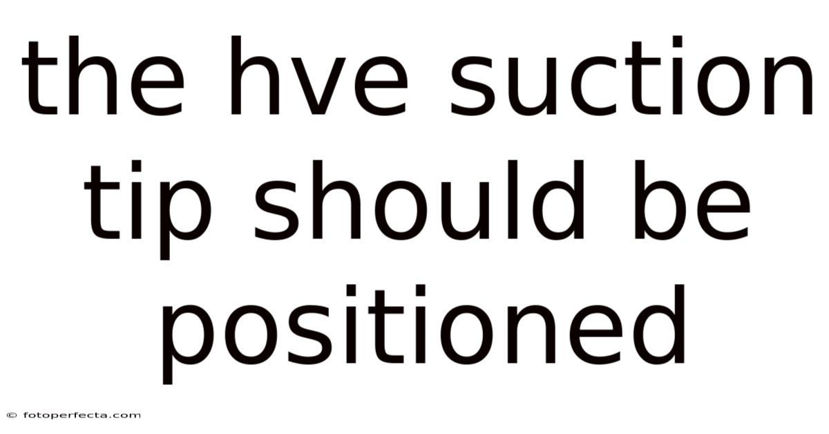 The High-Volume, Low-Pressure (HVE) suction system is a cornerstone of modern dental practice, designed to efficiently remove saliva, blood, and debris during procedures. Even so, its effectiveness hinges on the correct positioning of the suction tip. Improper placement can compromise patient safety, reduce suction efficiency, and prolong procedure times. Understanding the optimal positioning of the HVE suction tip is essential for dental professionals to ensure both clinical success and patient comfort Not complicated — just consistent..