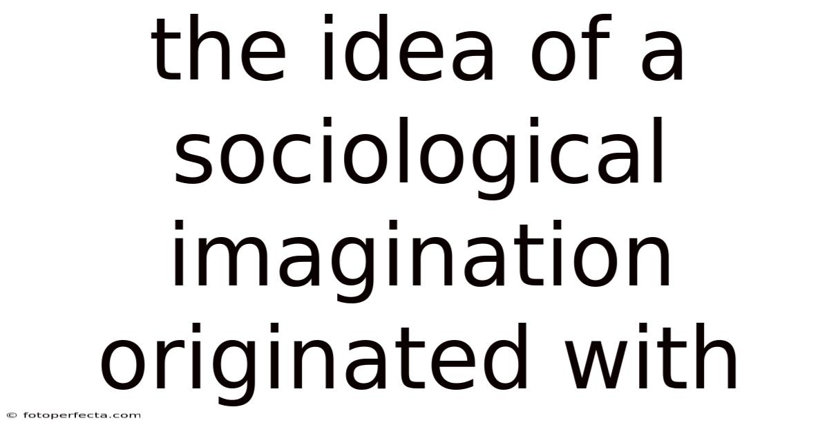 The Idea of a Sociological Imagination Originated With C. Wright Mills