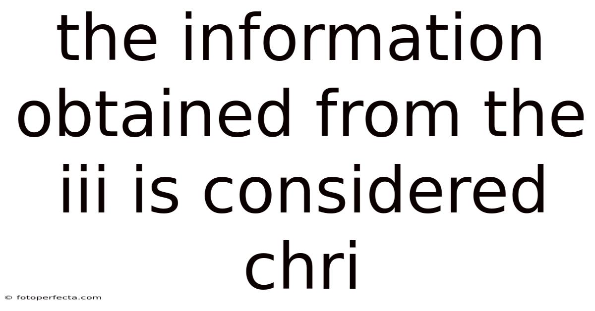 The information obtained from the International Institute for Information (III) is considered Criminal History Record Information (CHRI) when it pertains to an individual's interactions with the criminal justice system. This classification carries significant legal weight, triggering specific protections, restrictions, and guidelines for how the data can be handled.