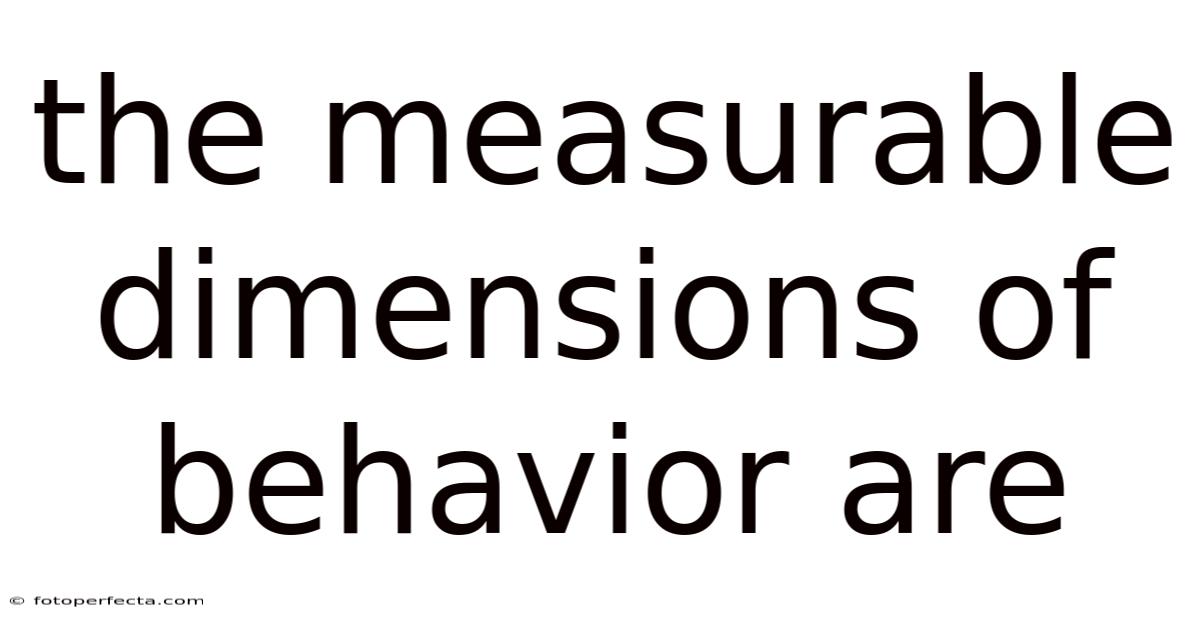 Understanding human behavior requires more than simple observation—it demands systematic measurement. Day to day, by breaking down complex behaviors into quantifiable elements, researchers and practitioners can track progress, evaluate interventions, and make data-driven decisions. The measurable dimensions of behavior form the foundation of behavioral psychology, education, clinical assessment, and organizational management. This article explores the fundamental dimensions that make it possible to measure behavior objectively and effectively Most people skip this — try not to..