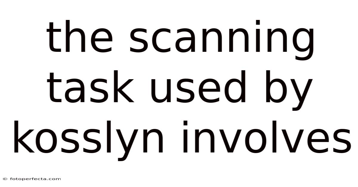 The scanning task used by Kosslyn involves a strong emphasis on the role of cognitive control in visual processing. Worth adding: cognitive control refers to the brain’s ability to regulate attention, inhibit irrelevant information, and maintain focus on task-relevant stimuli. Kosslyn’s experiments often include conditions where participants must suppress distractors or switch between different search strategies. Here's one way to look at it: in a dual-task scenario, participants might be required to perform the scanning task while simultaneously engaging in a secondary activity, such as remembering a sequence of numbers.
