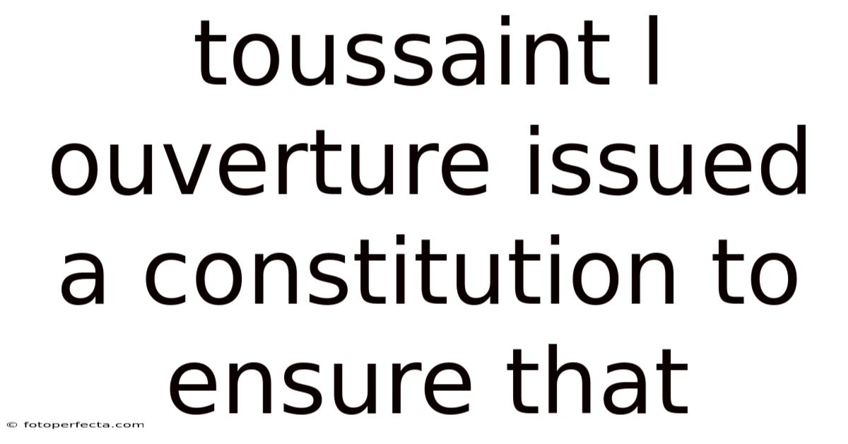The issuance of this constitution was a bold and visionary act by Toussaint L'Ouverture. It was an attempt to create a society based on the principles of liberty, equality, and fraternity, which were central to the Enlightenment ideals that had inspired the Haitian Revolution. By establishing a constitution that enshrined these values, L'Ouverture hoped to secure a future for Saint-Domingue that was free from oppression and exploitation But it adds up..