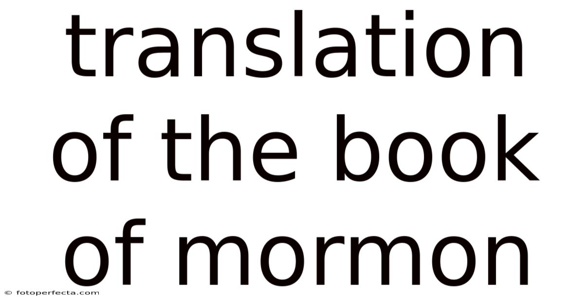 The Translation of the Book of Mormon: A Comprehensive Overview