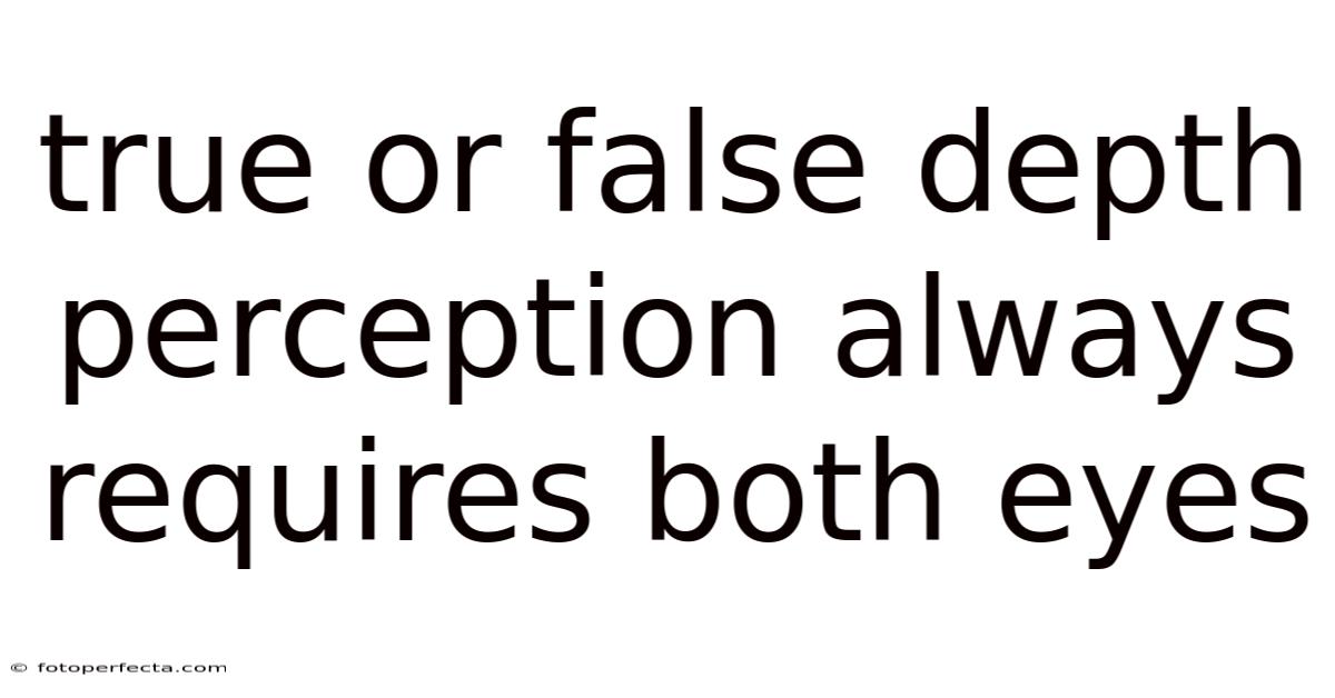 All in all, while binocular vision enhances depth perception, it is not always necessary. Here's the thing — the brain's ability to integrate these cues allows individuals with monocular vision to manage their environments effectively. On the flip side, monocular cues provide a solid and reliable means of perceiving depth with just one eye. That's why, the statement that depth perception always requires both eyes is false. Depth perception is a complex process that can be achieved through multiple mechanisms, both monocular and binocular And that's really what it comes down to..