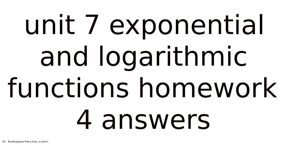 The task at hand demands precision and depth, requiring a comprehensive exploration of Unit 7’s exponential and logarithmic functions through the lens of homework 4 answers. On top of that, these exercises serve as a bridge between theoretical understanding and practical application, challenging students to manage complex mathematical relationships while reinforcing foundational knowledge. Such assignments often reveal gaps in comprehension or reliance on superficial memorization, making them critical for academic progress. Consider this: mastery here is not merely about recalling formulas but internalizing their nuances, their applications, and their interdependencies. Think about it: this guide will dissect these concepts systematically, offering clear explanations, illustrative examples, and strategic approaches meant for individual learning styles. Whether a student grappling with calculus prerequisites or a professional brushing up on professional development, the insights provided here aim to bridge the gap between abstract theory and tangible utility. Now, by engaging deeply with the material, learners not only resolve immediate challenges but also cultivate confidence in tackling future mathematical problems with clarity and poise. The journey involves careful analysis, iterative practice, and the ability to synthesize information effectively, ensuring that each step contributes meaningfully to the overall understanding. Such diligence transforms passive absorption into active mastery, setting the stage for deeper exploration and application. This foundational work lays the groundwork for advanced topics, reinforcing the importance of consistency and perseverance in academic pursuits Worth keeping that in mind..