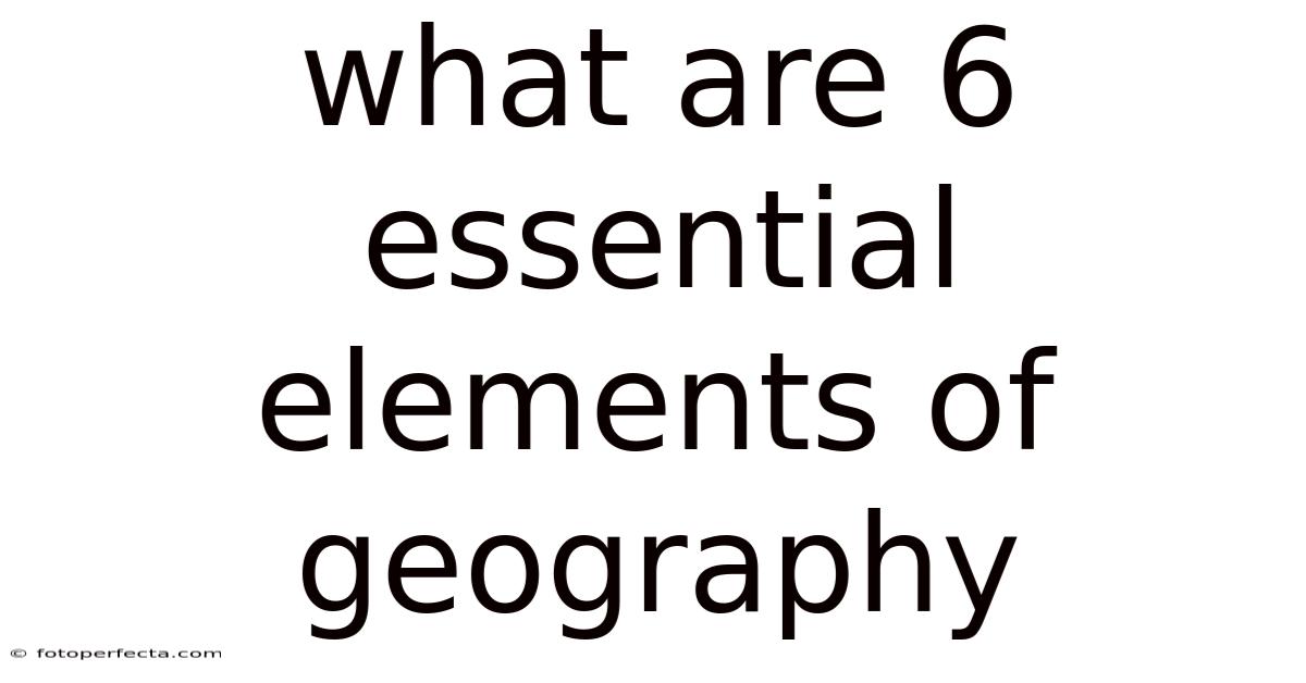 Geography is far more than the memorization of maps and capitals; it is a systematic study of the spatial relationships that shape our world. At its heart lie six essential elements that together form a comprehensive framework for analyzing how natural processes and human activities interact across space and time. On the flip side, recognizing these elements—Location, Place, Human‑Environment Interaction, Movement, Region, and Spatial Scale—enables students, planners, and anyone curious about the planet to interpret patterns, predict change, and make informed decisions. This article unpacks each element, explains why it matters, and illustrates how the six pieces fit together to create a holistic view of geography.