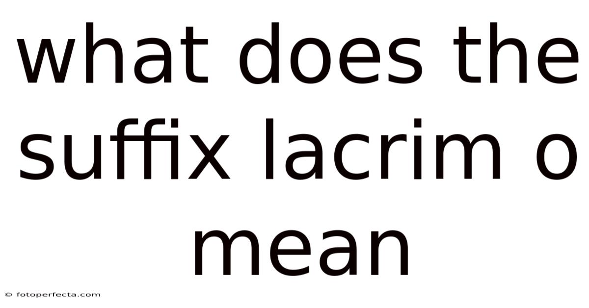 When exploring the nuances of language, certain suffixes play a crucial role in shaping the meaning and function of words. In practice, one such suffix is "lacrimo," which carries a specific and evocative significance. Consider this: this article gets into what the suffix "lacrimo" means, how it is used in different contexts, and why it matters in communication. By examining its structure and applications, we can better appreciate its role in conveying emotion and clarity Surprisingly effective..