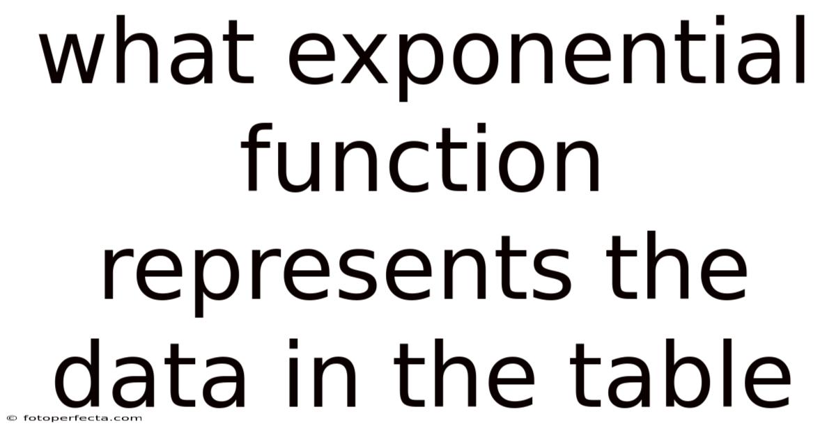 When a set of measurements grows or decays at a rate proportional to its current value, the relationship between the variables is best described by an exponential function. Determining the exact formula that fits a given table of data is a fundamental skill in algebra, calculus, and data‑science courses. In this article we will walk through the complete process of identifying the exponential function that represents the data in a table, from recognizing the characteristic pattern to calculating the precise parameters, verifying the fit, and interpreting the result. By the end, you will be able to tackle any similar problem with confidence, whether the data describe population growth, radioactive decay, compound interest, or any phenomenon that follows an exponential law And it works..
