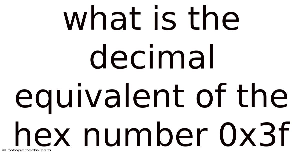 Conclusion The hexadecimal number 0x3f, when converted to its decimal equivalent, is 63. This conversion, while seemingly simple, is a fundamental skill in the realm of computing and digital systems. It bridges the gap between the human-readable base-16 notation and the machine-readable base-10 values, enabling programmers, engineers, and analysts to interpret and manipulate data effectively. Understanding the positional value system underlying this conversion empowers you to tackle more complex numerical representations and deepens your comprehension of how computers store and process information at the most fundamental level. Whether you're writing code, analyzing network traffic, or designing digital circuits, the ability to fluently translate between hexadecimal and decimal is an indispensable tool.