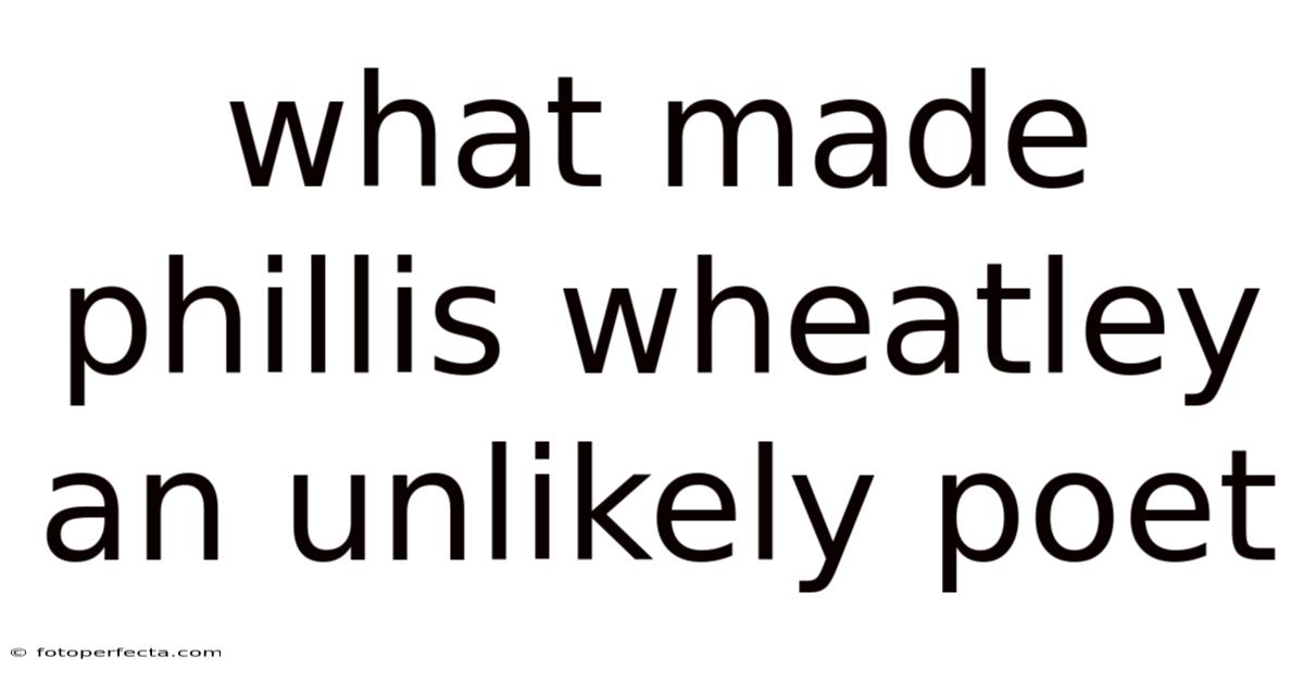 Phillis Wheatley is considered an unlikely poet because she was an enslaved African woman in colonial America, a time when enslaved people were denied education and considered intellectually inferior by the prevailing society. The odds of an enslaved person—particularly a woman of African descent—becoming a published poet in the 18th century were virtually nonexistent Simple as that..