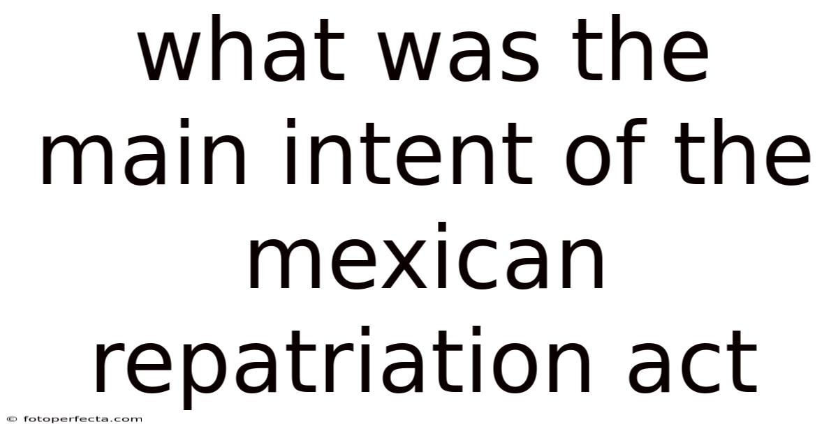 The Main Intent of the Mexican Repatriation Act: A Policy of Economic Protectionism and Racial Prejudice