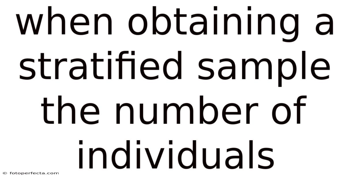 Mastering the calculation of individuals in a stratified sample is a fundamental skill in rigorous research. In practice, when obtaining a stratified sample, the number of individuals selected from each subgroup must be a deliberate choice based on the population structure and the research goals. On the flip side, whether you opt for proportionate allocation to mirror the population perfectly or disproportionate allocation to handle high-variance groups, the key is intentionality. By ensuring every significant subgroup is represented according to statistical best practices, you enhance the reliability, validity, and credibility of your findings, allowing your data to truly speak for the whole population Most people skip this — try not to. Still holds up..