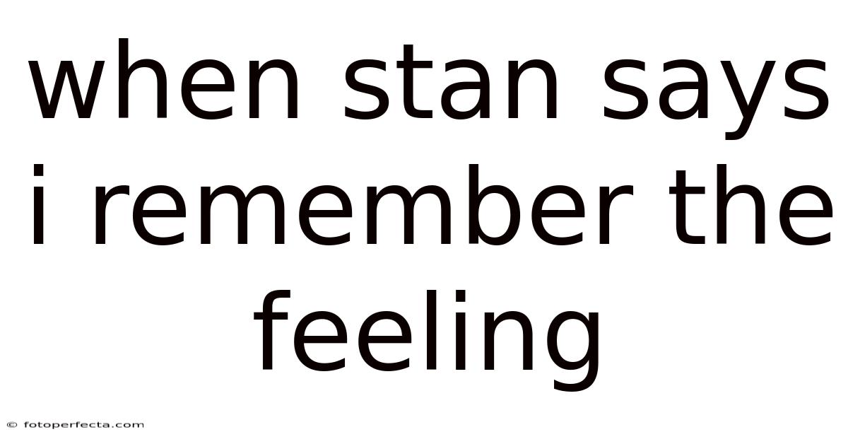 When Stan says I remember the feeling, it often serves as a critical moment that bridges the gap between past and present, inviting individuals to reflect on shared experiences and personal identity. Whether it’s a childhood memory, a significant life event, or an unexpected encounter, the act of remembering often reveals how deeply intertwined our past is with our present identities. This moment transcends mere recollection; it becomes a catalyst for introspection, a chance to reconcile fragmented memories with the narratives we construct about ourselves. For many, such instances are not just about capturing a specific instance but about understanding the emotional undercurrents that shape human connection. That's why in this context, the significance of "When Stan says I remember the feeling" lies in its universal resonance, serving as a universal language that transcends individual differences. Still, the weight of these recollections can be both comforting and challenging, prompting individuals to confront aspects of themselves they might otherwise overlook. And it invites us to consider how others might perceive the same memory, how it might influence relationships, and how personal growth can be catalyzed by revisiting such moments. Such reflections often lead to a deeper appreciation for the nuances that define human experience, making the act of remembering not just a personal exercise but a collective endeavor that enriches communal understanding. This dynamic interplay between memory and identity underscores the importance of mindful engagement with one’s past, ensuring that it remains a source of strength rather than a source of distress.
