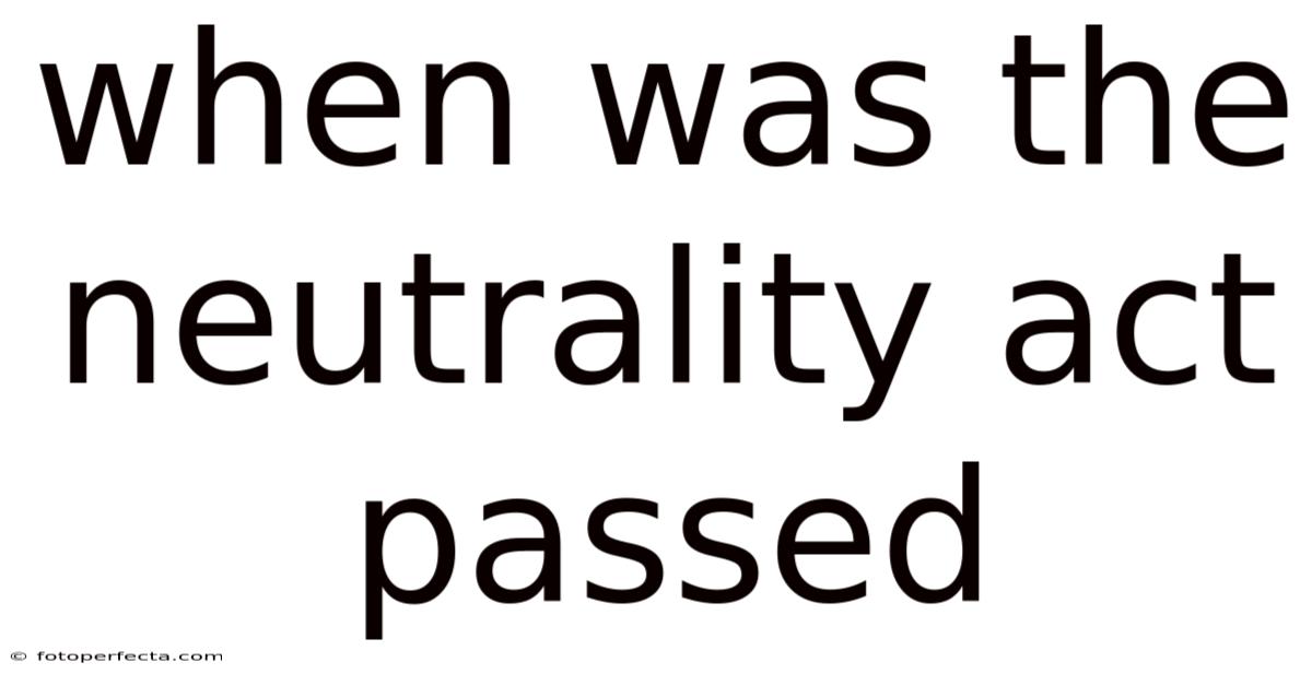 When Was the Neutrality Act Passed? A Comprehensive Look at the U.S. Neutrality Laws
