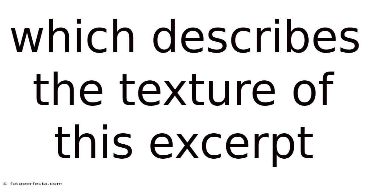 Beyond that, the texture of the excerpt influences how readers process information. Because of that, a well-structured passage with a distinct rhythm can guide the reader’s attention, making it easier to follow complex ideas. This is especially important in educational contexts, where clarity and engagement are essential for effective learning. By focusing on the texture, we highlight the significance of how writing is crafted to meet the needs of its audience And that's really what it comes down to. Turns out it matters..