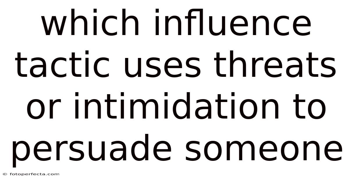 In the study of social influence, scholars categorize strategies that people use to shape opinions, attitudes, or behaviors into a handful of recognizable tactics. These include reciprocity, commitment, social proof, authority, liking, and scarcity, among others. Consider this: each tactic operates on distinct psychological principles, but they can also overlap. When analyzing which influence tactic uses threats or intimidation to persuade someone, it is essential to place this question within the broader taxonomy of influence, where it belongs to the category of coercive or pressure tactics that rely on the perception of negative consequences if compliance is not achieved Not complicated — just consistent..