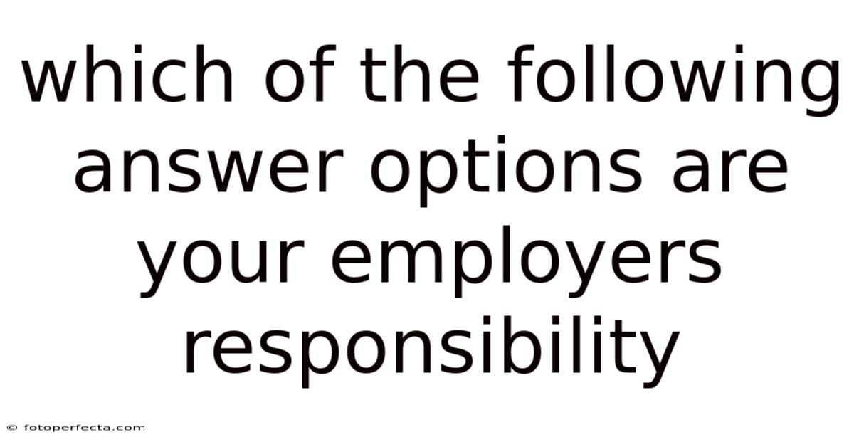 Understanding which of the following answer options are your employer’s responsibility is more than an academic exercise; it’s a practical tool for protecting your rights, enhancing your performance, and building a healthier workplace culture. By recognizing the legal, contractual, and ethical duties that fall on the employer—ranging from safety and compensation to training and transparent communication—you can confidently figure out employment challenges, negotiate favorable terms, and hold your organization accountable when standards slip.