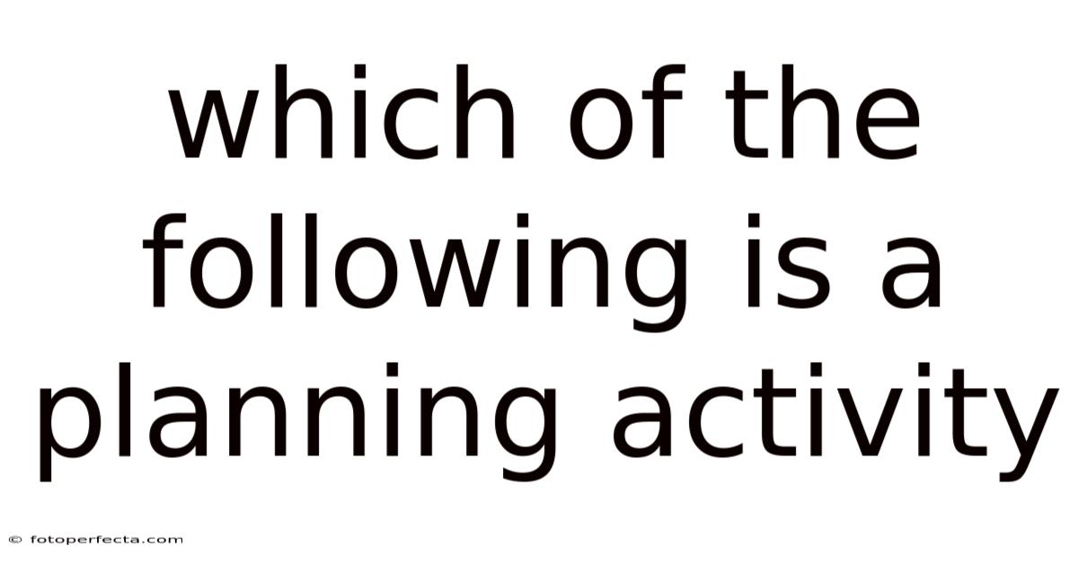 Whichof the Following Is a Planning Activity? Understanding the Core of Strategic and Operational Decision-Making