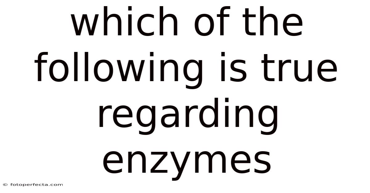 Enzymes are biological catalysts that accelerate chemical reactions in living organisms, and understanding which of the following is true regarding enzymes is essential for students of biology, biochemistry, and related fields. This article explores the fundamental properties of enzymes, clarifies common misconceptions, and identifies the correct statements that define their behavior, specificity, and physiological role Took long enough..