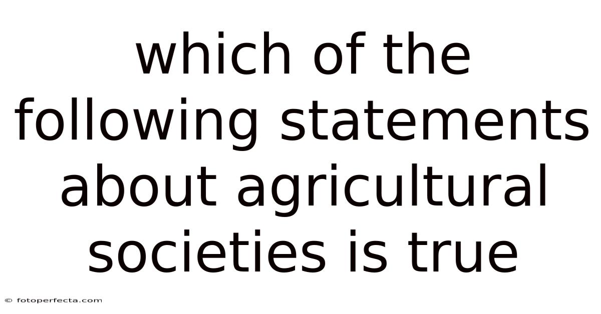 Agricultural societies—those that rely primarily on farming and animal husbandry for subsistence and economic activity—have shaped human history in profound ways. Understanding their characteristics helps us grasp why some societies flourish while others stagnate, and why agriculture remains a cornerstone of modern civilization. Below, we examine several common statements about agricultural societies, evaluate their accuracy, and explain the underlying reasons that make one of them the most reliable description And it works..