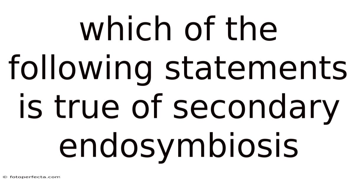 Secondary endosymbiosis is a fascinating evolutionary event that reshaped the tree of life by creating new, complex eukaryotic cells. It occurs when a eukaryotic host cell engulfs another eukaryotic alga that already contains a primary endosymbiont (usually a cyanobacterium‑derived chloroplast). The host then retains the engulfed algal cell, integrating its organelles and genetic material into its own cellular architecture. This process has produced a diverse array of photosynthetic protists, including many groups of algae that inhabit marine and freshwater environments. Understanding which statement about secondary endosymbiosis is correct requires a clear grasp of the mechanisms, evolutionary significance, and the cellular outcomes that distinguish it from primary endosymbiosis No workaround needed..
