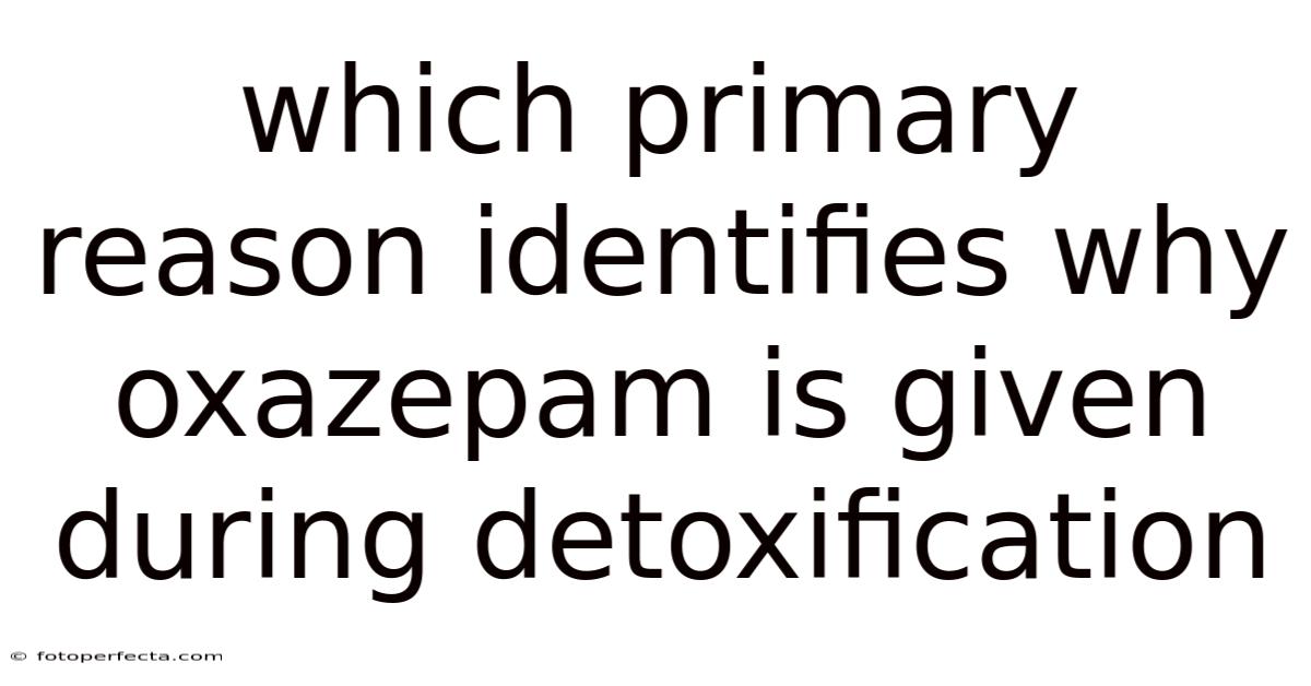 The primary reason oxazepam is administered during alcohol detoxification is to stabilize the central nervous system by mitigating the severe withdrawal symptoms that can be life‑threatening. As a long‑acting benzodiazepine, oxazepam provides a smooth, sustained anxiolytic effect that reduces anxiety, tremor, insomnia, and the risk of seizures, making the detox process safer and more comfortable for patients Not complicated — just consistent..