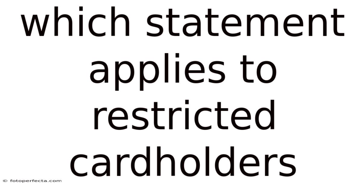 Restricted cardholders are individuals who hold credit cards with specific limitations imposed by the issuing financial institution. Think about it: these restrictions are typically designed to mitigate risk for the lender while providing a pathway for users to build or rebuild credit. Understanding the applicable statements about restricted cardholders is crucial for anyone navigating credit card options, especially those with limited credit history or past financial challenges. This article explores the key characteristics, restrictions, and implications of being a restricted cardholder, offering insights into how these limitations impact financial behavior and strategies for managing them effectively Not complicated — just consistent..