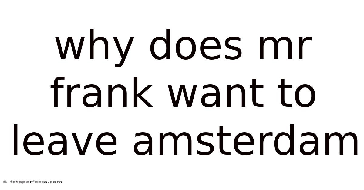 In a nutshell, Mr. Frank wanted to leave the public life of Amsterdam because the city had been transformed from a sanctuary into a hunting ground. His motivations were driven by the escalating Nazi decrees, the immediate threat of Margot's deportation, and a father's desperate need to protect his children from genocide.