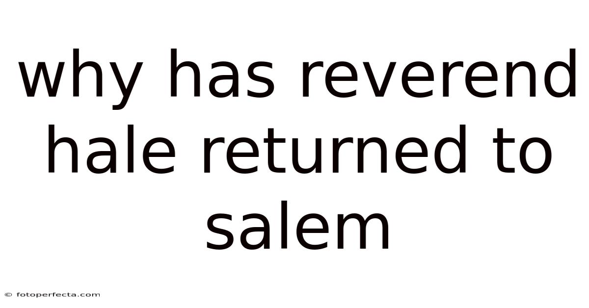 Reverend John Hale's return to Salem is a complex and multifaceted issue that cannot be reduced to a single explanation. It is likely that Hale's decision to return to Salem was influenced by a combination of factors, including his desire to make amends, his desire to understand the social and cultural context of the trials, and the societal pressures that influenced his decision.