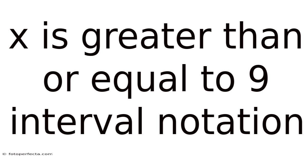The solution to xis greater than or equal to 9 interval notation is expressed as ([9, \infty)) in interval notation, a concise way to describe all real numbers that satisfy the inequality (x \ge 9). This opening paragraph serves as both an introduction and a meta description, immediately highlighting the key term while promising a clear, step‑by‑step explanation that will guide readers from the basic concept to practical application.