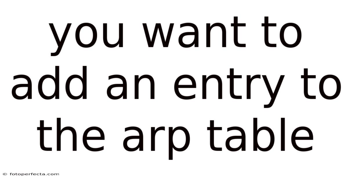 You Want To Add An Entry To The Arp Table